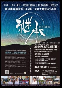 明日がもう今日になってしまいました! 11/22・12/3は赤坂 杜のうた様にて 10:30-12:30映画継承の上映会! ランチ代2000円 午後は 12:30-14:00 福島と神社の為のチャリティーコ