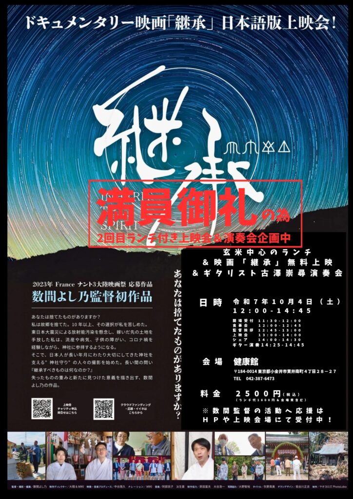続けて投稿です! 明日の健康館での上映会のお知らせ 明日は 大好きな貫井神社のお膝元 野川わきの 健康館にて上映会があります! 上映会開始して初めての満員御礼です!✨ 主催くださいました 小金井市議の遠藤ゆ