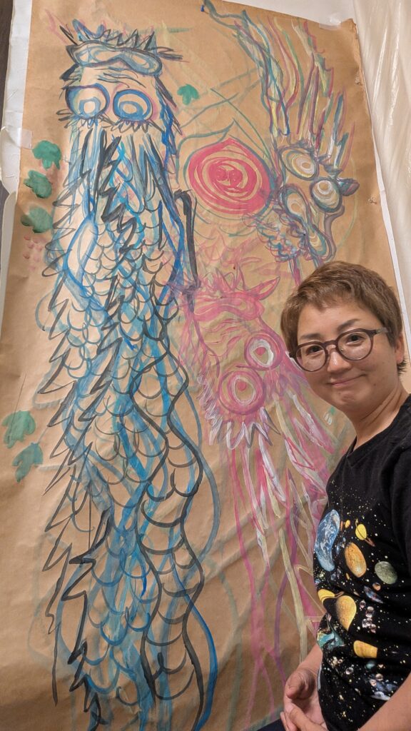 皆さん、こんにちは! ライブペイント無事出来ました! 9/30は ライブペイントが 阿部民子さんの音楽瞑想『龍の物語』の中 ライブペイントで龍を描く事が楽しく出来ました!! 息子ちゃんが、携帯音楽で邪魔しな